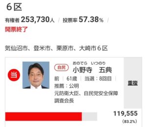 10月31日投開票の衆院選が終わりました。所属します宮城6区、小野寺五典先生は得票率83.2%(全体2位)で堂々の8期目当選。 今回、選対にお手伝いに入りました北海道6区、東国幹先生も相手候補に約3万5千票差をつける圧勝 […]